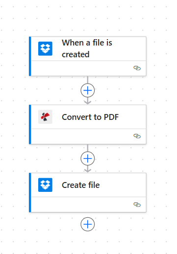 Flow so far: Trigger → Convert to PDF → Create file.