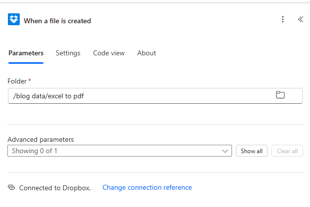 - Create an automated cloud flow. Add trigger Dropbox – When a file is created (wording may vary by connector version).
