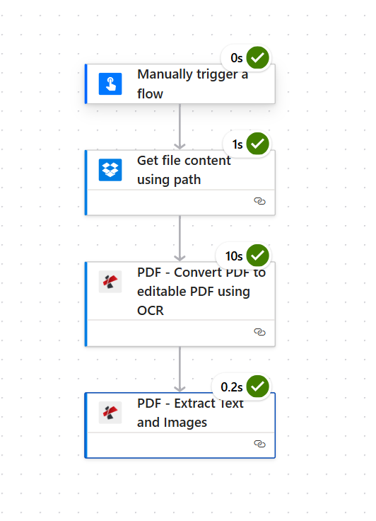This guide walks you through a flow that handles both: trigger → get file content (Dropbox) → Convert PDF to editable PDF using OCR (for scanned docs) → Extract Text and Images (PDF4me). You get the exact output structure and links to troubleshoot and try the API yourself.