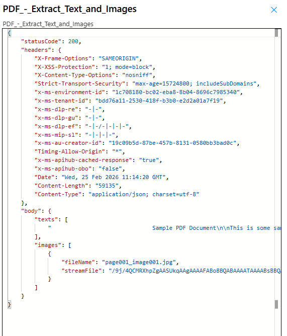 Test the Extract Text and Images API without Power Automate using our API Tester—upload a PDF and see the response:
