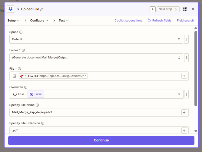 | Upload File | Output, name | Mail_Merge_Zap_deployed-2.pdf |