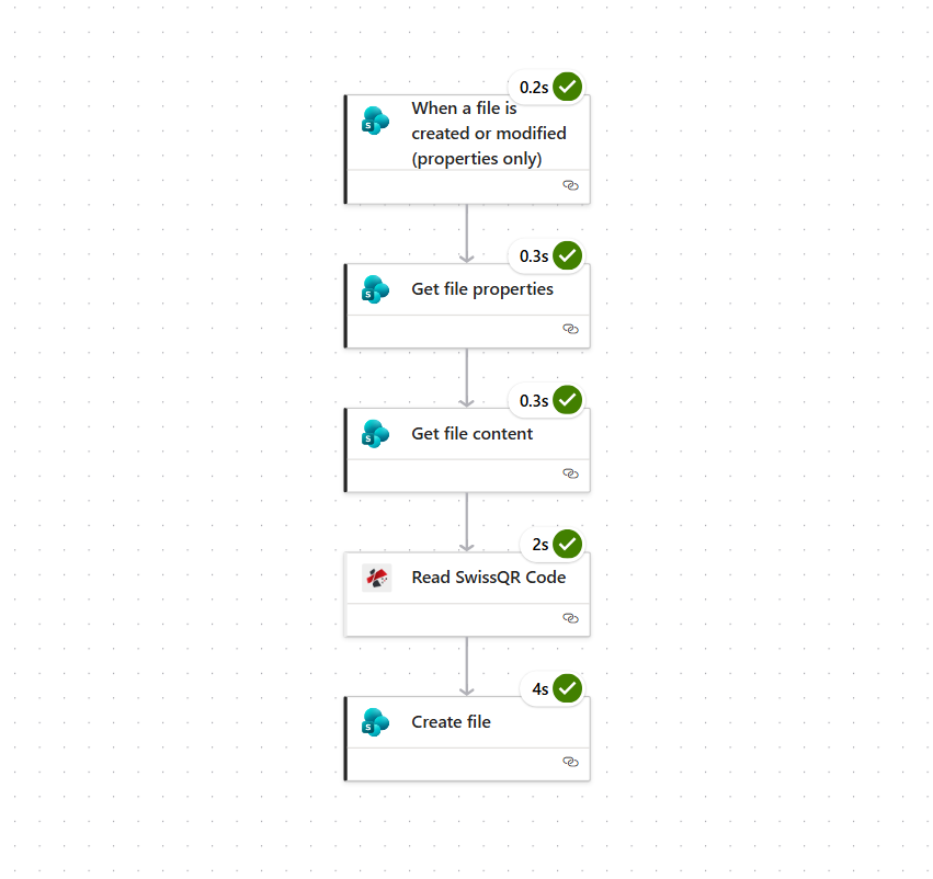 This guide describes the SharePoint automated flow: when a file is created or modified in a document library, the flow runs, extracts the Swiss QR data, and renames the file (e.g. creditor+IBAN that is Test AG_CH0200700110003765824.pdf). The same pattern works with Dropbox or Drive triggers.