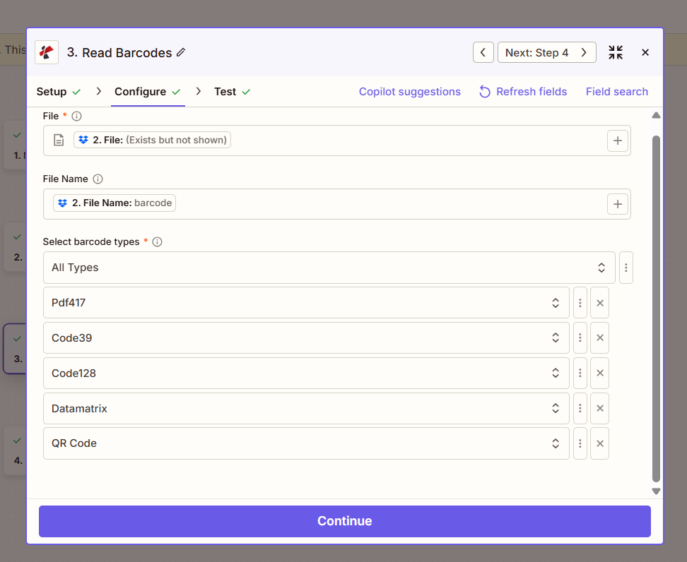 - What if I have multiple barcodes? The Read Barcodes action can return multiple barcodes; Zapier often exposes the first. If you need a specific one, check the step output and map the correct Barcode Text (or use a Formatter step to pick from a list).