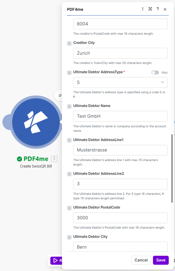 Step 3: PDF4me – Create SwissQR Bill